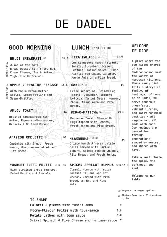 We hebben de mogelijkheid tot afternoon tea: een proeverij van ons menu met een laagje hartige en zoete snacks, een sapje en thee of koffie. Voor de afternoontea helpt het om dit van tevoren te weten.